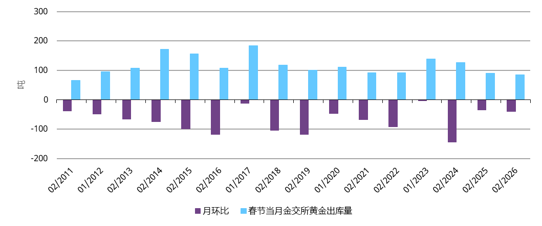 历年春节当月上海黄金交易所黄金出库量