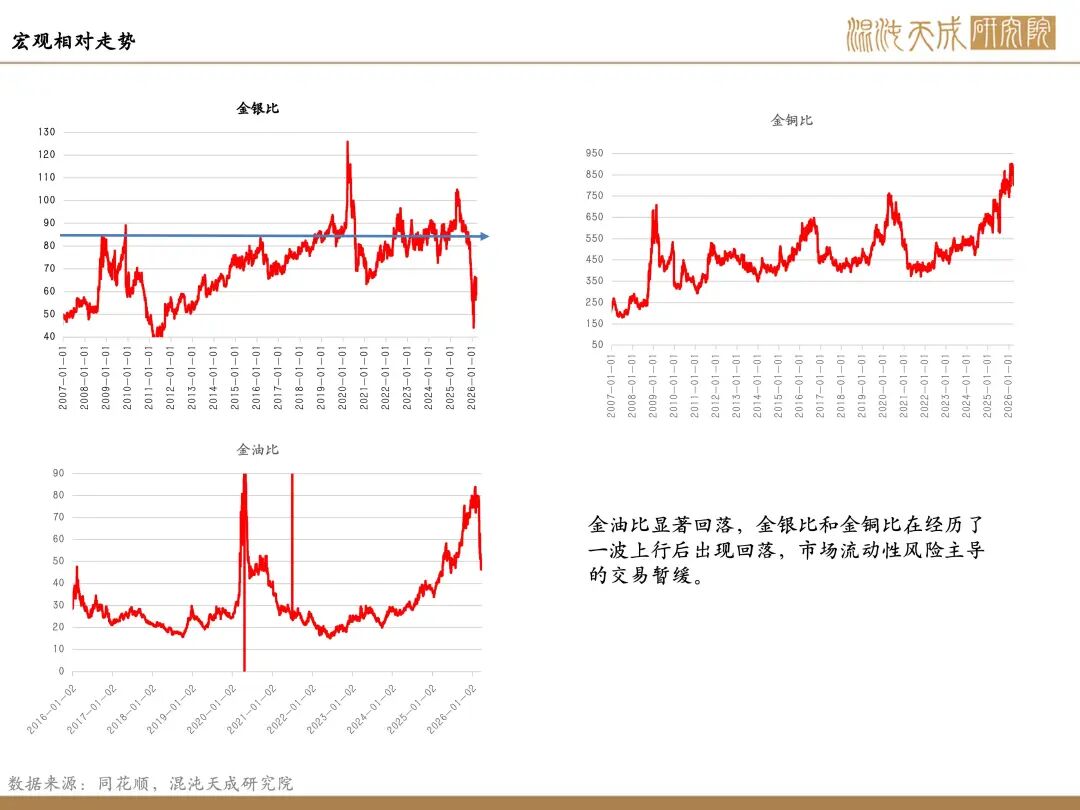 这一逻辑的传导路径是,美债利率受到通胀预期和供需失衡走高(美债走弱),美股受到利率端的显著上行出现抑制(美股走弱),而短期资金在抛售美债和美股后,一部分进入美元(美元指数小幅走高),但因美元信用尚不稳定(美元指数涨势缓于美债利率),资金一部分进入实物信用资产。美元指数是相较于一揽子货币而言较强,而非相对于贵金属(黄金),整体美元资产的相对偏弱使得资金进入实物信用资产并带动价格走高,贵金属作为美元外的信用资产,在支撑位受到此逻辑传导路径开始出现反弹。