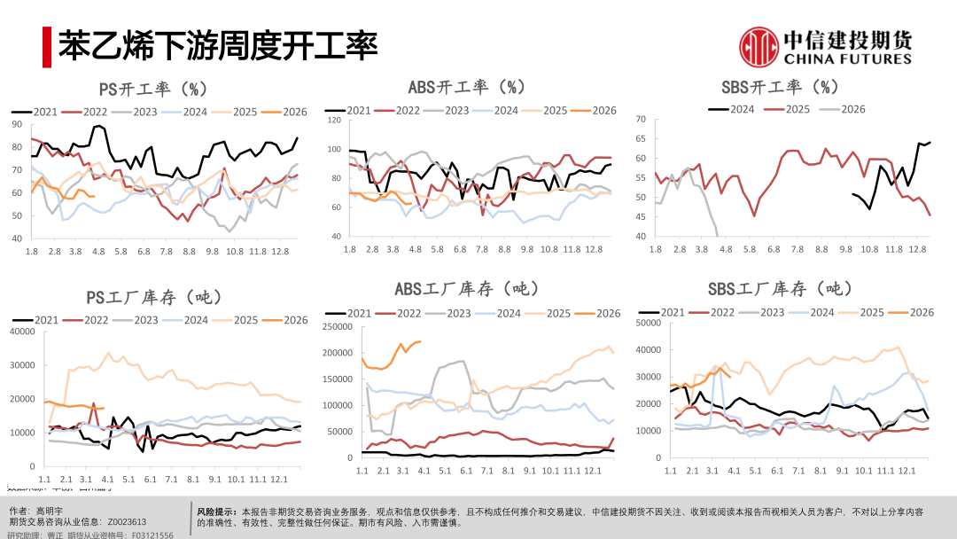 需求:三月下游 PS、ABS 行业陷入严重的利润困境。由于原料端前期涨幅过大,下游产品传导不畅,生产利润被挤压至历史低位,导致部分工厂被迫减产或推迟采购。这种“向上挤压利润”的负反馈机制,成为下半月价格回落的主要诱因。