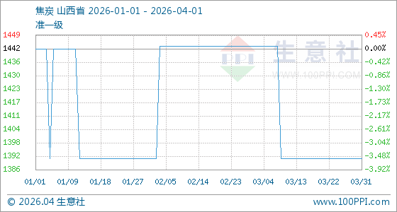 4月1日生意社焦炭基准价为1391.25元/吨
