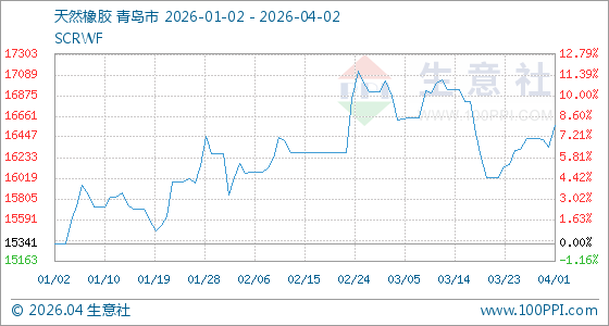 4月2日生意社天然橡胶基准价为16566.67元/吨
