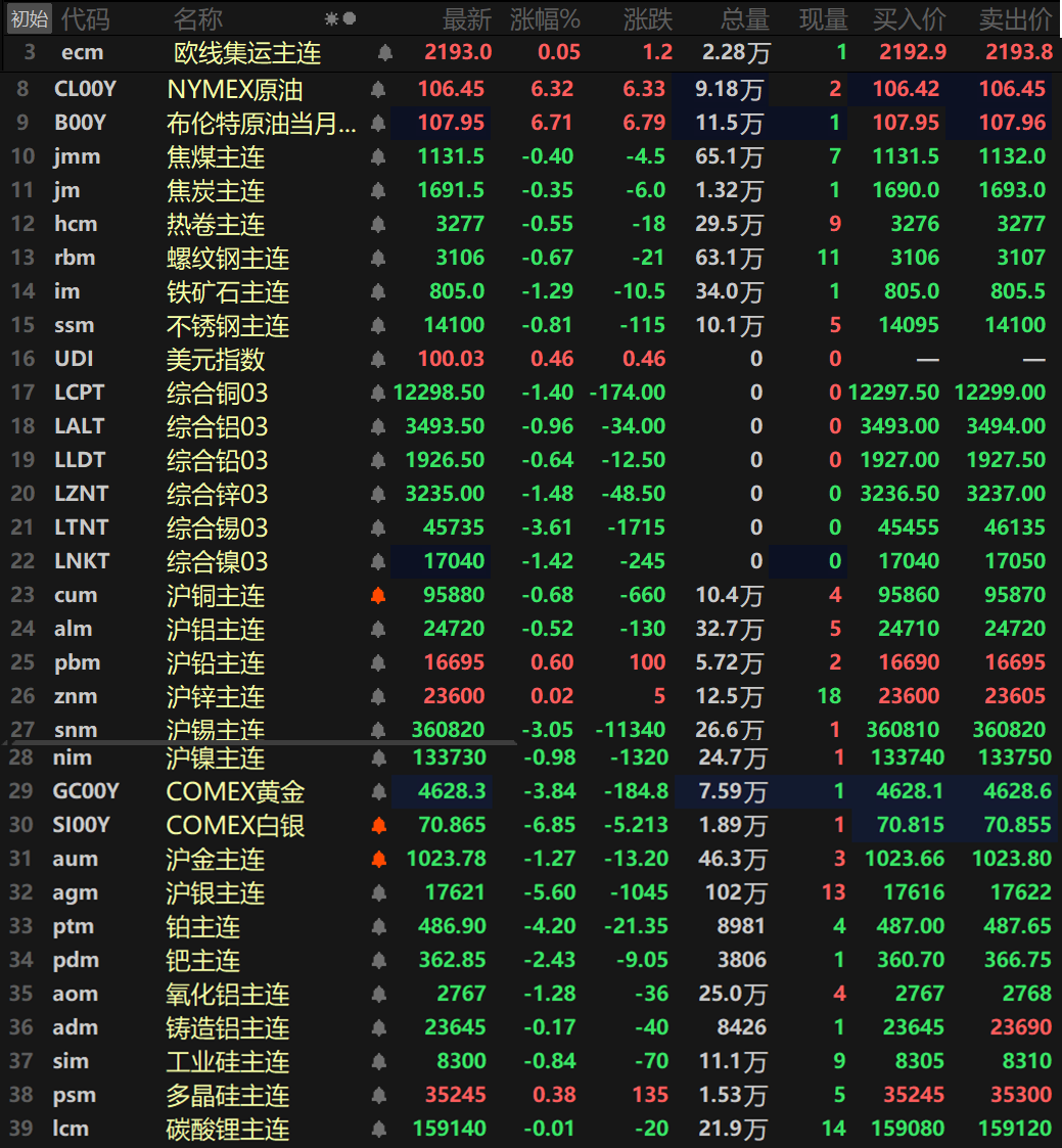 原油大涨逾6%金属近全线下跌伦沪锡纽金跌超3%纽沪银跌逾5%【SMM日评】