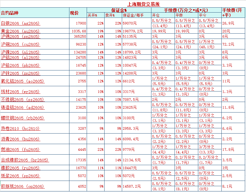 期货交易哪个品种保证金和手续费最低(附最新交易所手续费)