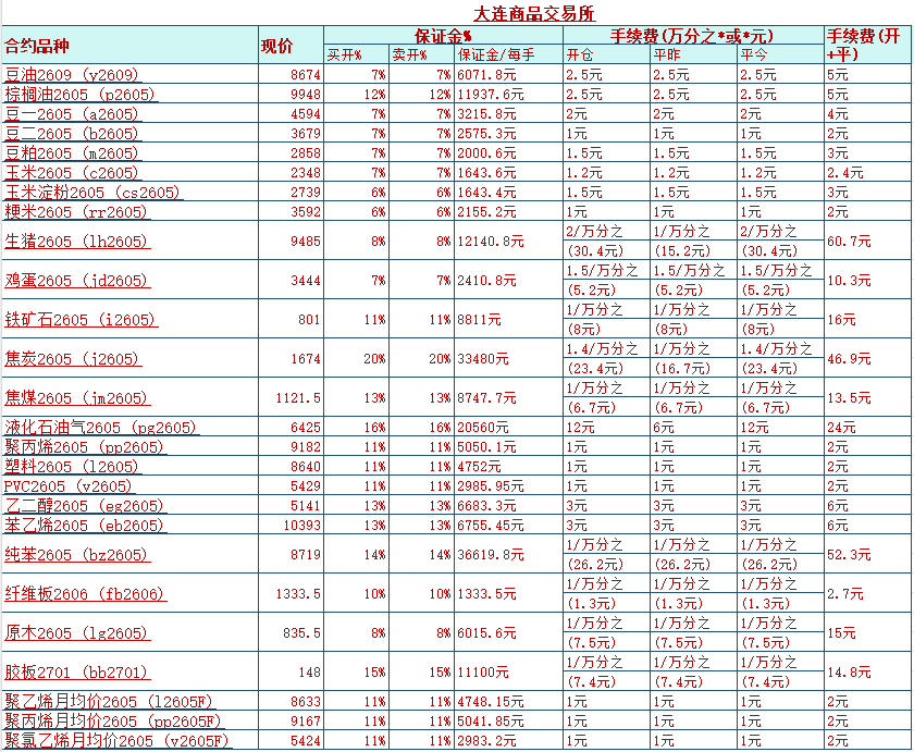 期货交易的手续费不是固定不变的,交易所会根据行情来调整手续费和保证金。通常来说,交易越是不活跃的品种,手续费会越低,目前来说,玉米、豆粕、白糖和大连的月均价期货手续费都是比较便宜的。下面的标准有交易所最新的手续费和保证金,如有疑问,欢迎咨询。