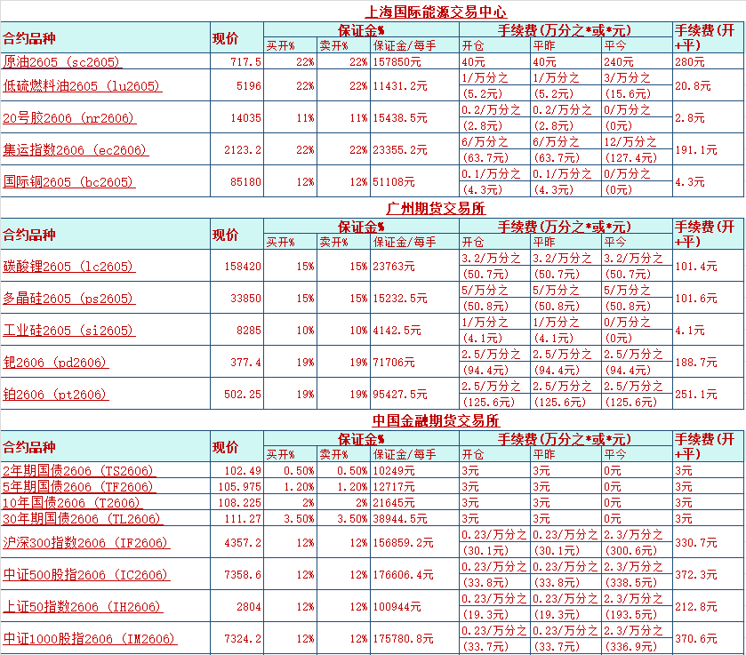 请问期货最新交易手续费和保证金是多少?