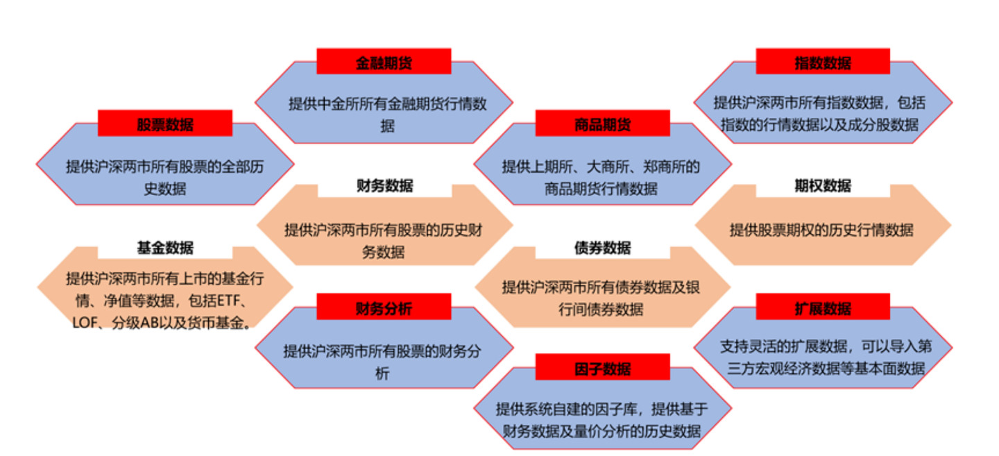 QMT提供的数据源极为丰富,涵盖股票、基金、债券、指数、金融期货、商品期货、期权等全品种数据,同时包含财务分析数据、因子数据及其他扩展数据,可满足不同量化策略的数据源需求。此外,系统内置灵活的扩展API,支持直接导入第三方基本面数据,例如可对接聚源、万得的宏观经济数据、财务数据及自有因子数据等外部数据源。若交易策略可直接调用这些扩展数据,能大幅节省计算时间,提升策略执行效率。