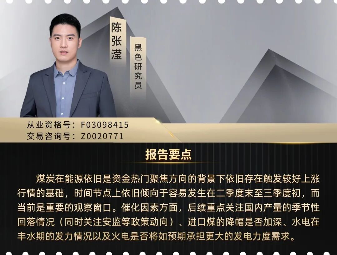 总体来看,煤炭走势发展以及相关因素发展暂时与我们前期所预期的相一致,煤炭在能源依旧是资金热门聚焦方向的背景下依旧存在触发较好上涨行情的基础,时间节点上依旧倾向于容易发生在二季度末至三季度初,而当前是重要的观察窗口。