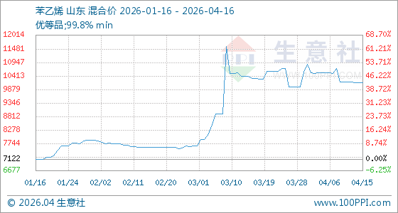 4月16日生意社苯乙烯基准价为10146.00元/吨