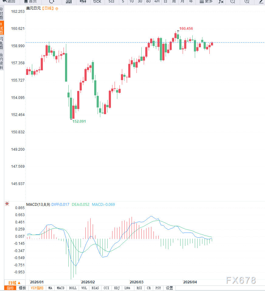 与此同时,美国与伊朗预计将在周末展开新一轮谈判。特朗普对达成长期协议表达乐观预期,但市场普遍保持谨慎态度。在谈判结果尚未明朗前,避险资金流入美元,对日元形成压制,USD/JPY升至159.35附近。