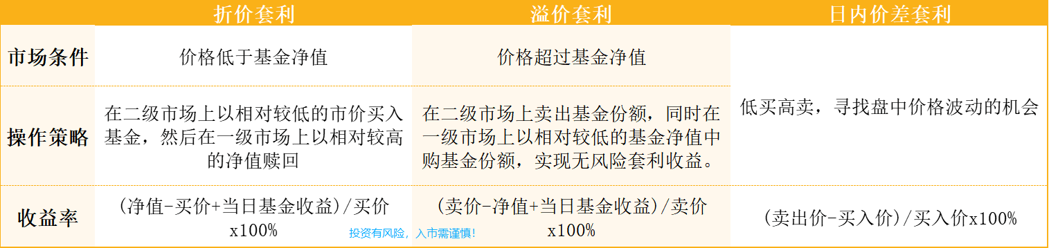 货币ETF除了持有享受货币基金收益外,更高端的玩法在于套利交易。货币ETF的套利交易分为以下三种:折价套利、溢价套利以及日内价差套利。