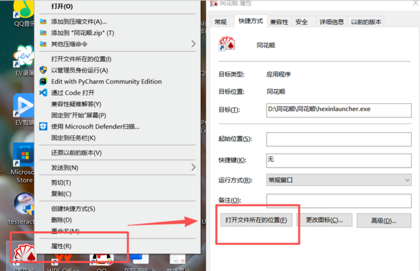 桌面单击同花顺软件图标→属性→打开文件所在位置(找到同花顺主程序目录);
