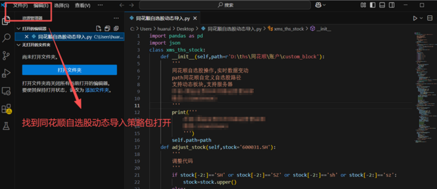1、vscode导入同花顺自选股动态导入策略包。