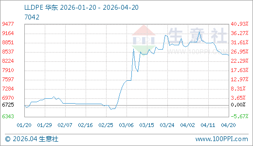 04月20日LLDPE价格8425.00元/吨60天上涨24.35%