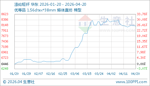04月20日涤纶短纤8104.65元/吨60天上涨23.44%