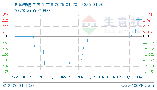 04月20日纯碱1222.00元/吨60天上涨3.38%