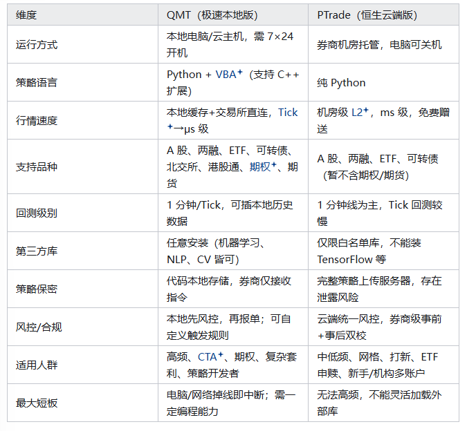 这主要取决于要求。有些人需要QMT,有些人需要PTrade。根据他们的实际情况,他们可以选择支持使用这种定量软件的证券公司。这具体涉及定量软件的具体使用。下面是QMT和PTrade之间的简单比较,可以与其他定量软件相比。