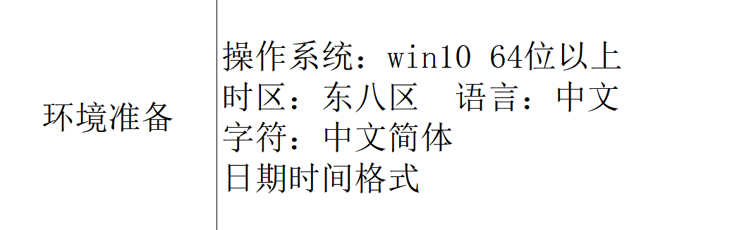 软件需在以下的要求来进行配置:操作系统、时区、语言、字符、日期时间格式的要求要满足相应的要求。