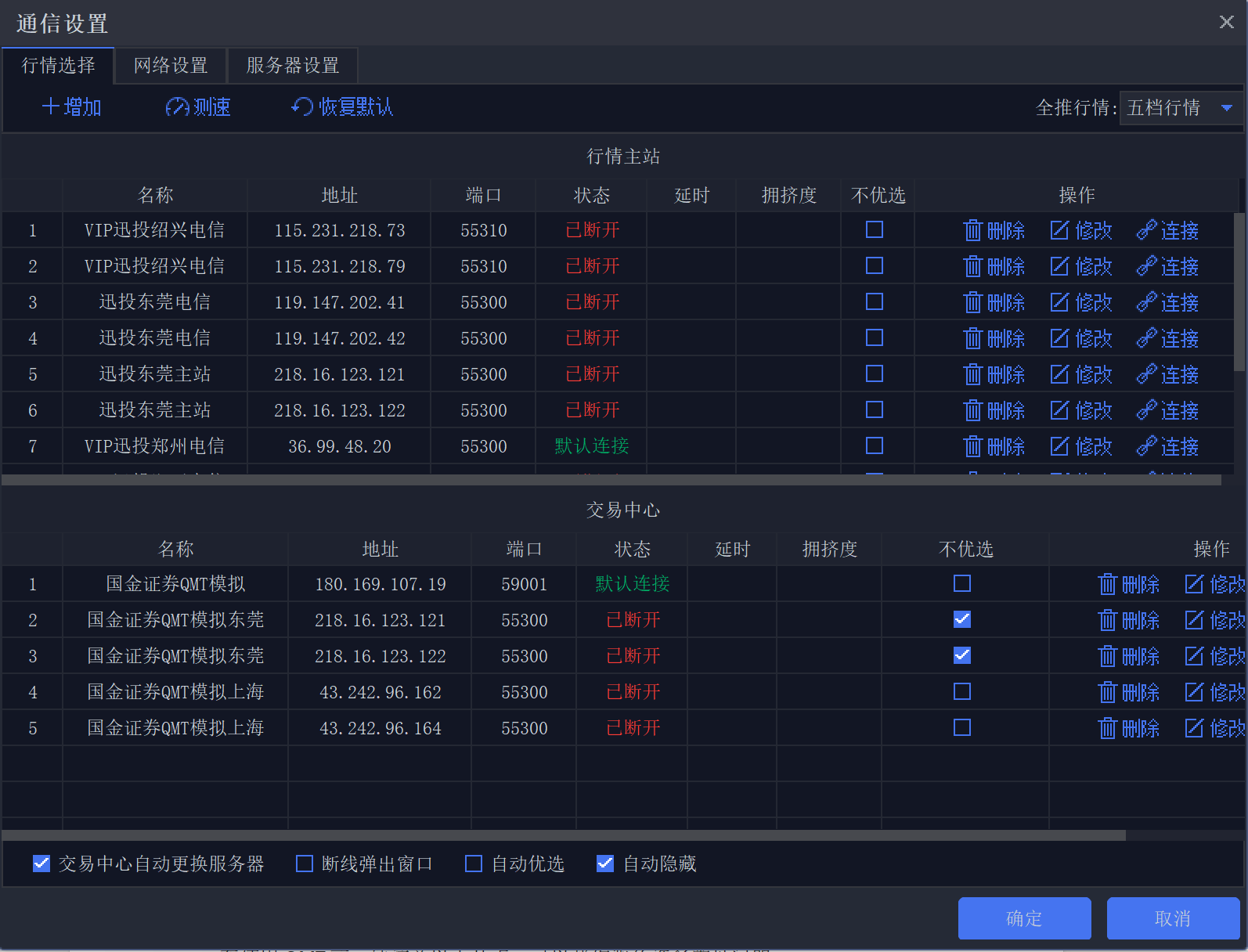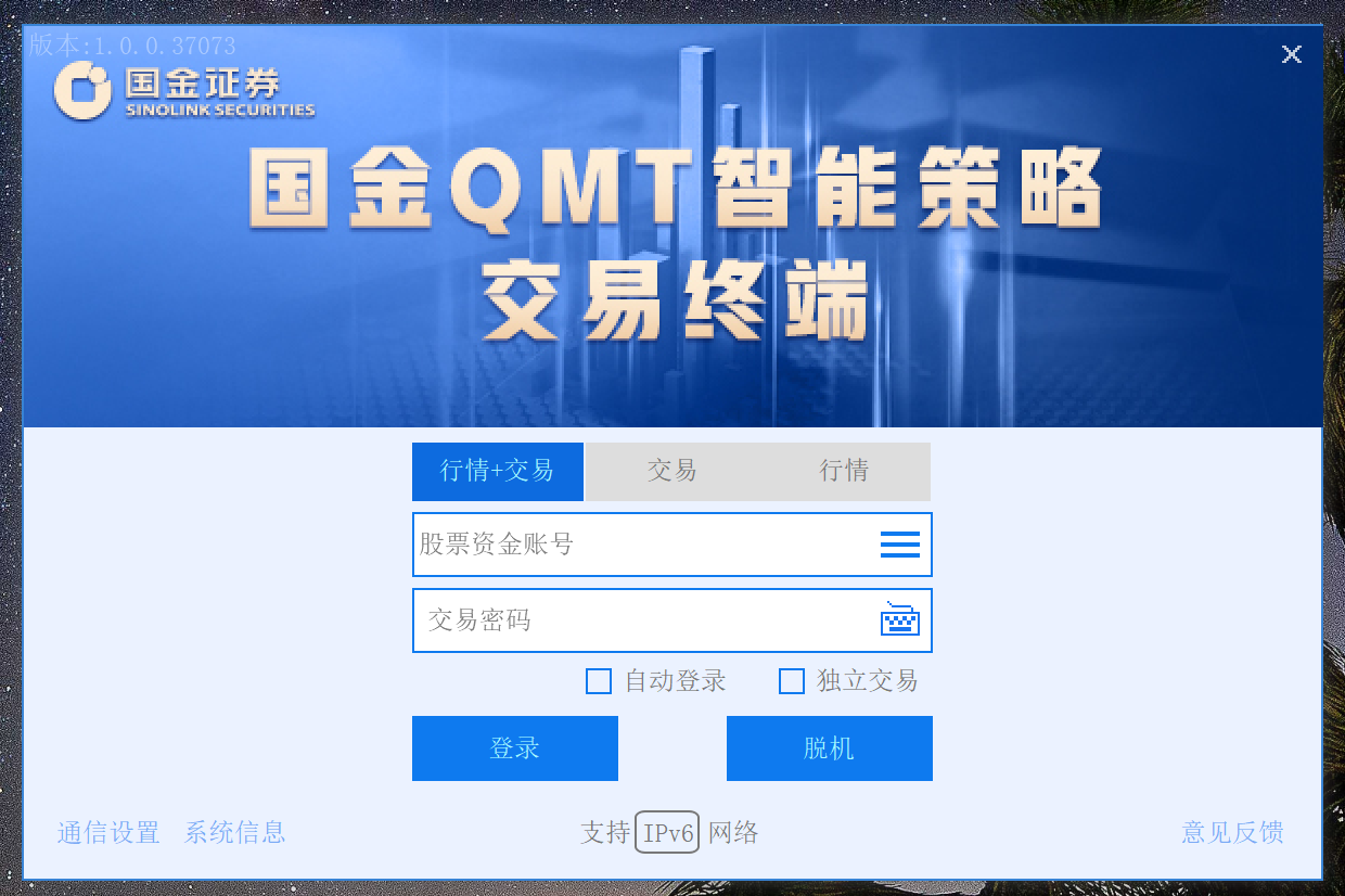 也可以根据自身的需求选择交易、行情、自动登录、独立交易等各项功能。