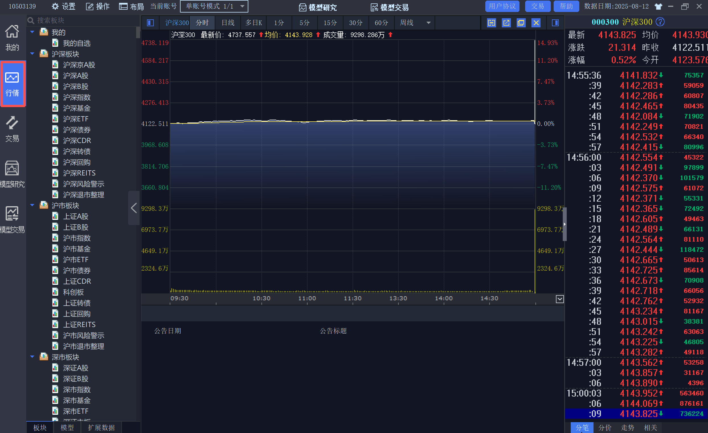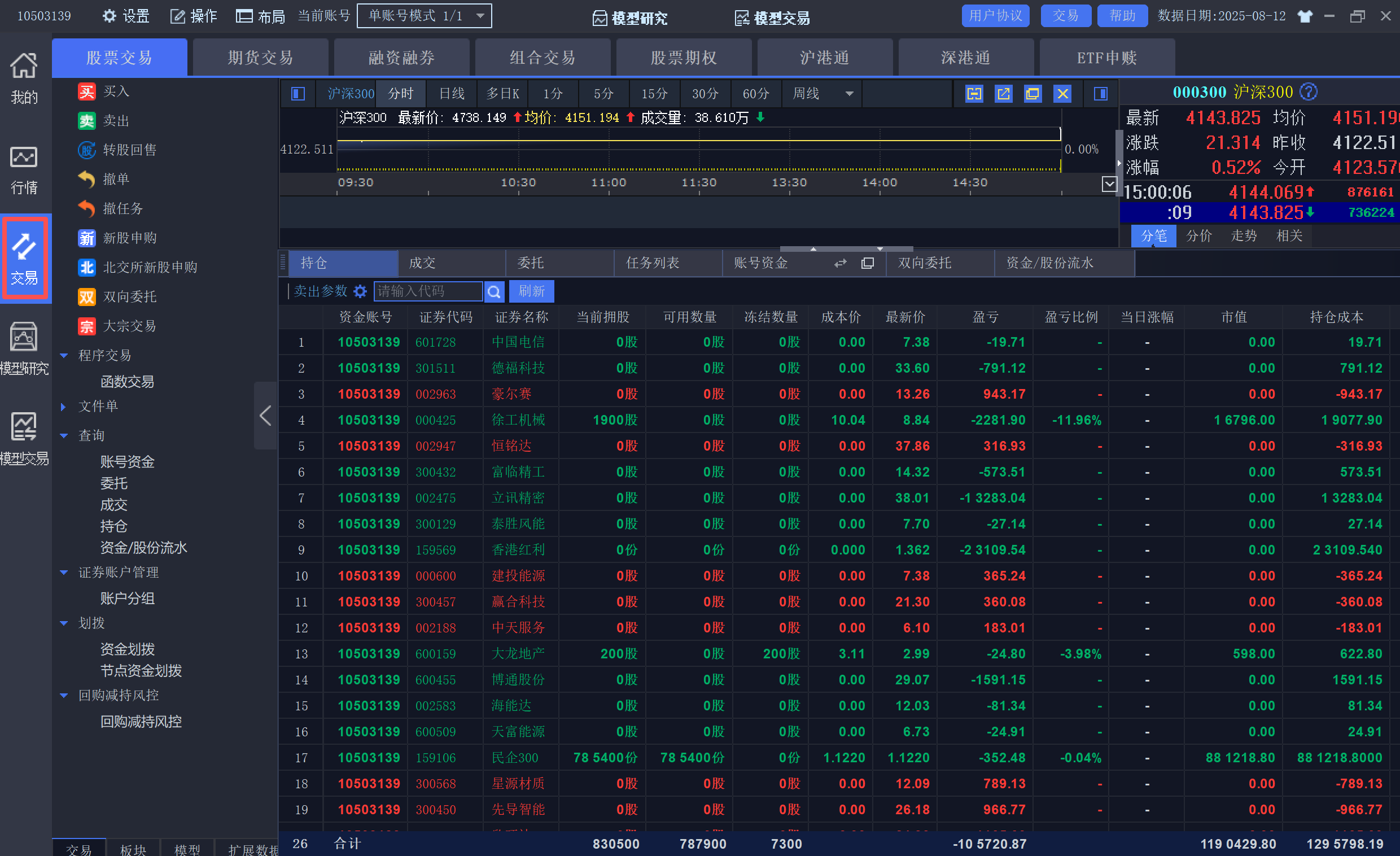 提供普通交易(市价、限价)、期货交易、组合篮子交易、融资融券、沪股通、深股通等功能,满足不同交易需求。
