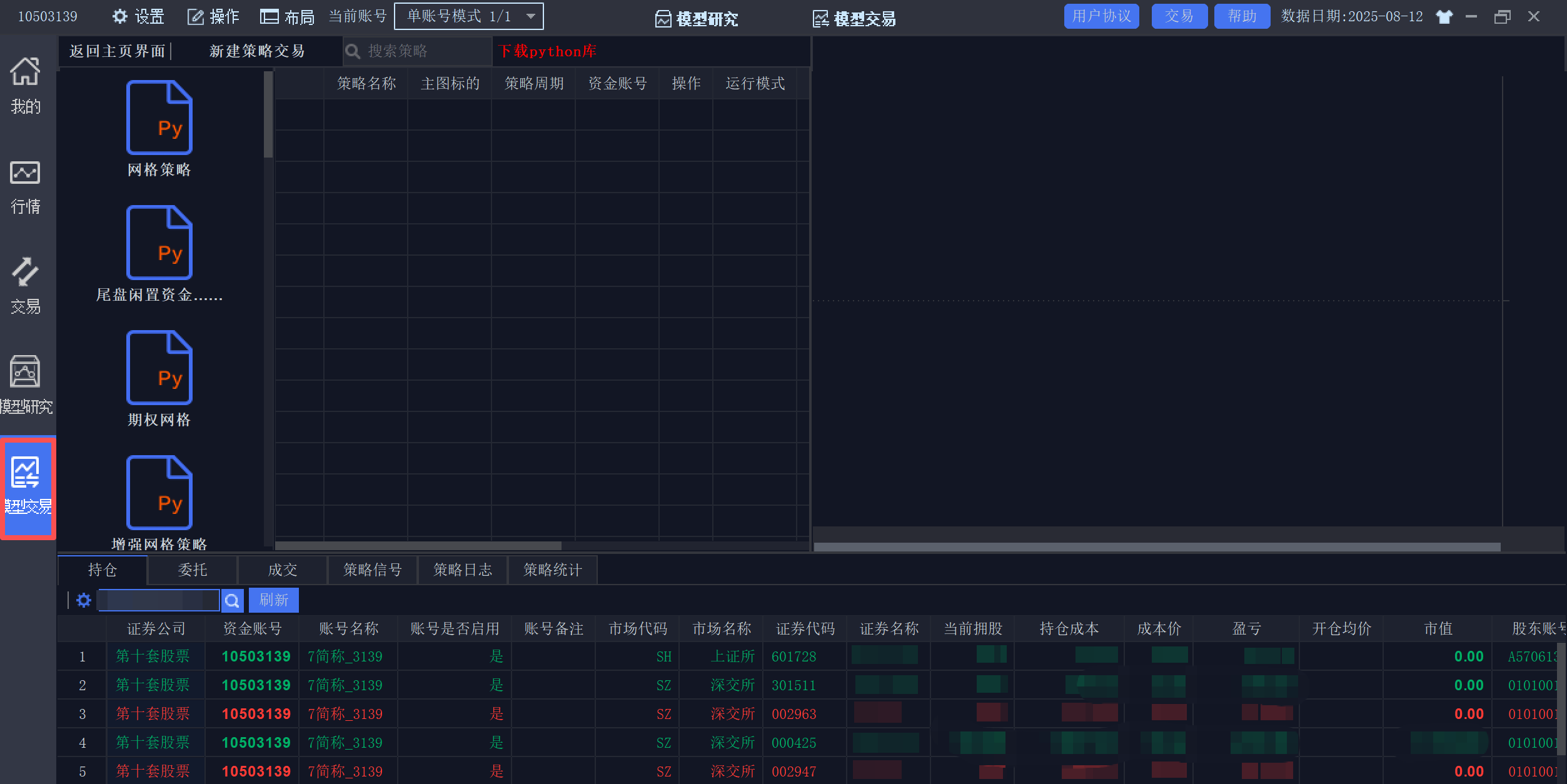 当你的策略通过回测验证后,就可以在“模型交易”模块中让它投入实战了。