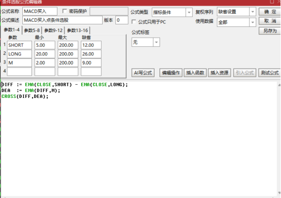 不过从用户角度看,如果你会写通达信公式,上手QMT的VBA也会非常快——很多思路是相通的。下面这张图就是通达信公式编辑器的界面,你可以对比看看: