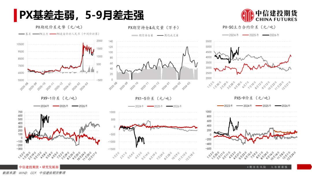 中期策略:观望。短期策略:观望。套利策略:可关注PX7-9逢低正套机会。