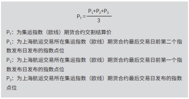 集运指数(欧线)期货的交割结算价是集运指数(欧线)期货交割结算的基 准价,为上海航运交易所在集运指数(欧线)期货合约最后交易日发布的及最后 交易日前第一、第二个指数发布日发布的三个上海出口集装箱结算运价指数(欧 洲航线)的算术平均值。用公式表示如下: