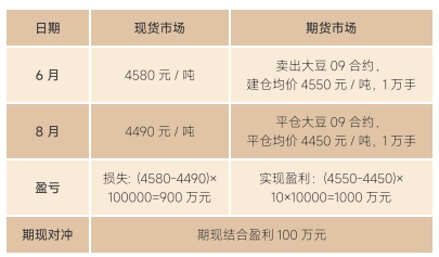 案例评价:综合损益为盈利100万元。该企业通过期货卖出保值规避了大豆库存贬值的风险,期货端盈利覆盖现货价格的下跌。