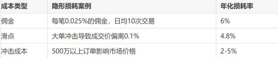 某高频策略回测显示年化收益25%,实盘考虑以下成本后亏损:
