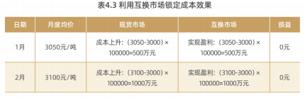 案例评价:通过互换业务,该企业可以将全年豆粕采购价格锁定在3000元/吨,规避了豆粕价格上涨的风险,有利于实现该企业对全年原材料采购成本的控制。