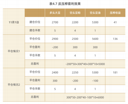 某压榨企业根据期货市场行情,经测算压榨收益238元/吨左右,而正常情况下,这一压榨收益应为150元/吨左右,所以投资者可以通过买大豆、卖豆粕、卖豆油的方式进行压榨套利。