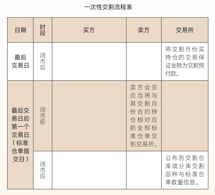 ①交易所上市品种均可采用一次性交割。