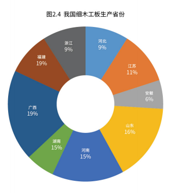 其中细木工板的生产地区分布与胶合板大致相同,主要集中在江苏、山东、浙江、河南、河北、湖南、福建、安徽和广“西等9个省区,八个省区细木工板总产量占全国总产量的83.44%。