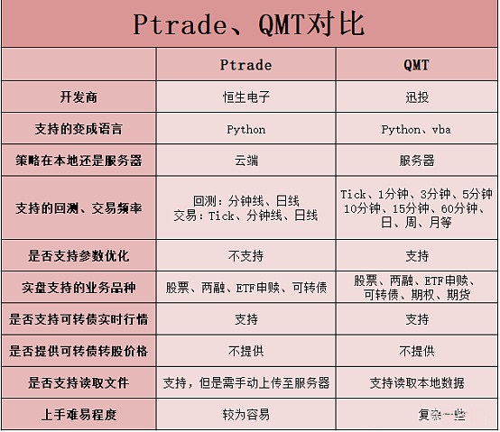 在选择量化交易软件QMT与Ptrade时,可参考以下分点对比: