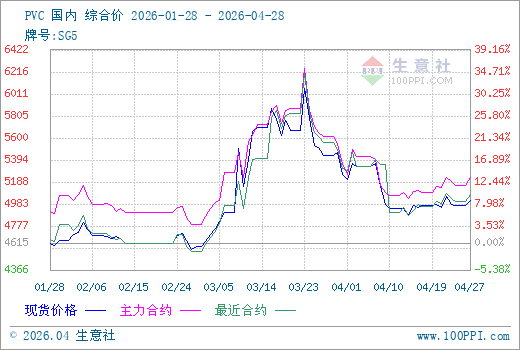 4月28日PVC期货主力合约2609收盘价为5358元/吨。