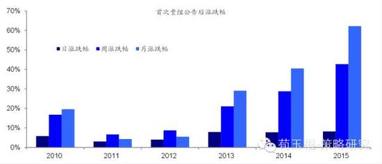 大小盘风格的变化,恰恰源于不同经济环境下制度红利的升降。如果说“越小越美丽”源于制度红利,为何有风格变化呢?我们仔细观察风格变化的宏观背景可见,小市值公司更优时经济增速下行,大市值公司更优时经济增速上行。这里没有行业区分,实际上过去25年大小市值公司的行业属性一直在改变,往往公司盈利增速不变但市值变大后超额收益降低,如贵州茅台(218.860, 0.00, 0.00%)、万科等,这恰恰说明盈利增长的基本面不是风格的决定性因素。更本质的因素是,经济增速上行时,公司内生增长很快,对并购重组等外延扩张的需求不强烈,而经济增速下行时,恰恰相反。2009年以来上市公司并购重组的公司数量占比显示,经济增速回落后,该数据明显上升,而且小市值公司发生的比例远高于市场平均水平。尤其是13年以来,国务院、证监会等部门多次发文鼓励并购重组,并购市场火热,13、14、15年前5%小市值公司中发生重组的比例分别高达15.4%、12.2%、25.5%。