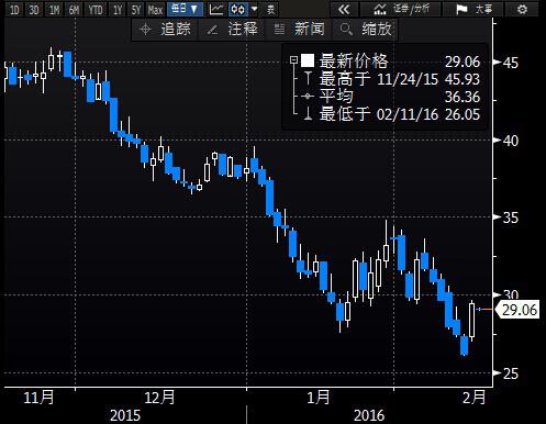 北京时间11:08,美国NYMEX原油3月期货报29.08美元/桶,布伦特原油4月期货报32.89美元/桶。