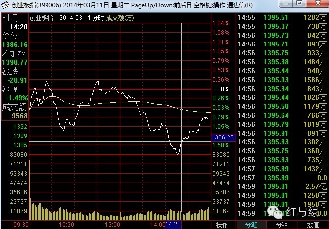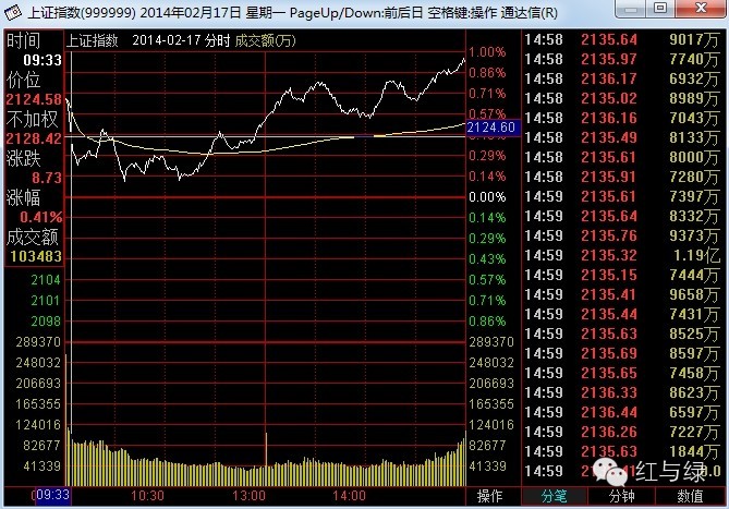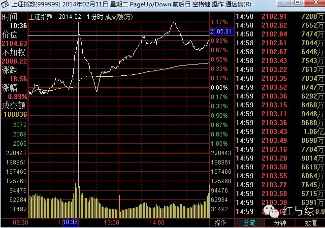 1、2014年2月11日10:35分,李大霄微博出现牛图,股指急挫。