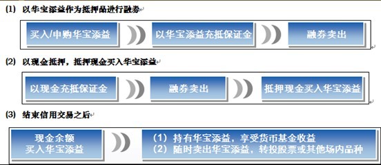 将华宝添益作为抵押品参与融资融券,相比现金抵押来说,华宝添益在抵押期间可获得的收益高得多。相比股票和权益类ETF来说,以华宝添益作为融资融券保证金的安全性,远胜于股票抵押和权益类ETF抵押。
