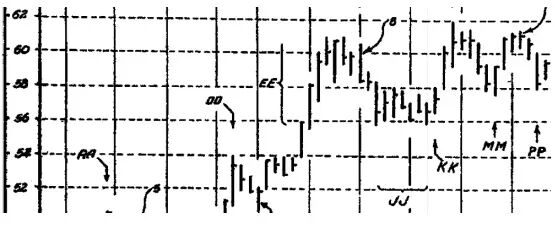 威科夫认为要想在股票投资中取得成功,必须识破那些大作手的操盘方法,然后跟着他们走。他曾经指出:“除非预见到10-50个点的行情,一般大作手不会参与到行情中来。利弗莫尔曾经告诉我,除非某只股票根据他的测算至少有10个点的行情,否则他根本不会去碰 。”