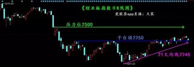 从创业板日线图上看也许更简单些,如上:四季度的平台底绿线压力在上,距离尚远;刚突破的三重平台顶蓝线支撑在下,今天再次回踩,确实弱,但也真没破;小五浪上攻沿着紫色21天均线依旧运行良好,作为技术派,天策强调太多次神奇的21天均线了——在它趋势向上的阶段中,K线站在它上面就看多,K线掉到它下面就看空——就是那么简单!