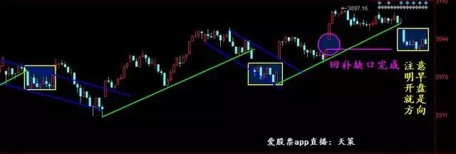 看上图,正如周末天策所述,大盘30分钟K线图上今早直接破位绿线,之后就开始和前面黄色方框一模一样的挖坑横盘8条K线(刚好一天),不好的方面是越来越弱四个字,也即这一次盘中回补了缺口,这一点和前两轮不同。那么,既然8条K线走完,那明早就该直接选择方向了……高开上去那就正常的再涨两轮成为下一条向上的绿线,万一低开那就真的破位开始下跌了,需要立刻离场观望!