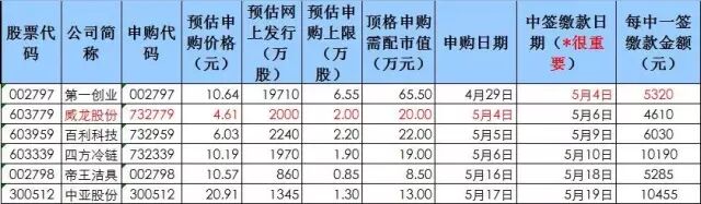 新股|今日威龙股份(732779)申购,第一创业中签扣款
