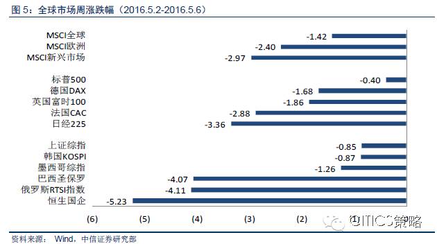过去一周全球股市全线下跌,各国股市不同程度受挫。整体来看,美国经济走弱、中国制造业疲软叠加日本央行意外决定不加息加大了市场对全球经济增长放缓的疑虑,投资者情绪回调,全球普跌。分市场来看,本周新兴市场跌幅相对高于发达国家。主要诱因在于:亚特兰大联储主席洛克哈特周二在美国佛罗里达讲话时表示:“市场可能低估了6月加息的概率。两次加息是有可能的。美联储还有好几次会要开,但是否加息仍取决于经济的发展情况。”此表态又再一次扰动市场对于美联储加息的预期,加大新兴市场资金流出的压力,在全市场投资者情绪趋于谨慎观望的时期,新兴市场回调幅度明显更大。此外,虽然欧洲区经济数据好于预期,但因全球经济增长存在不确定性、美国加息预期又再次发生变化,加上企业业绩令人失望等因素,欧洲市场整体相对低迷;日本股市继续受央行维持利率不变的影响压制投资者情绪、本周恰逢休市,交易寡淡市场跌幅依旧较大。