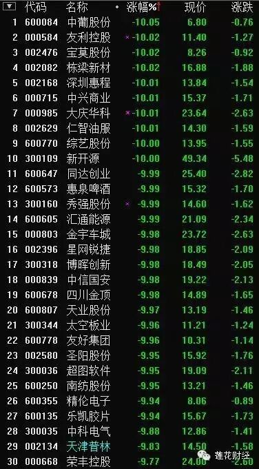 消息一出,风声鹤唳。壳资源这个一夜情概念股最先“中枪”倒下,纷纷跌成狗,其他题材股也纷纷躺枪,从而引发股指的一波波杀跌。盘后数据显示,当日有上千亿资金出逃,出逃规模堪比去年股灾。当日跌幅榜靠前的股票大部分都是壳股: