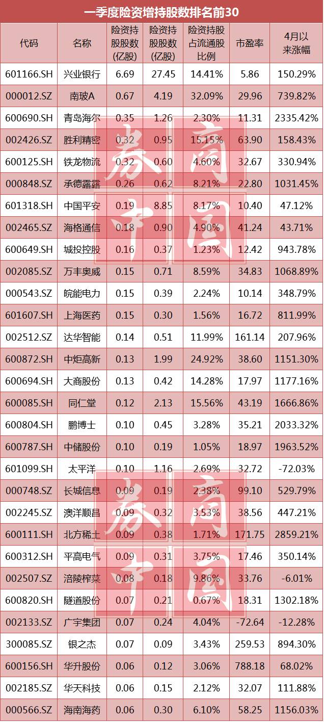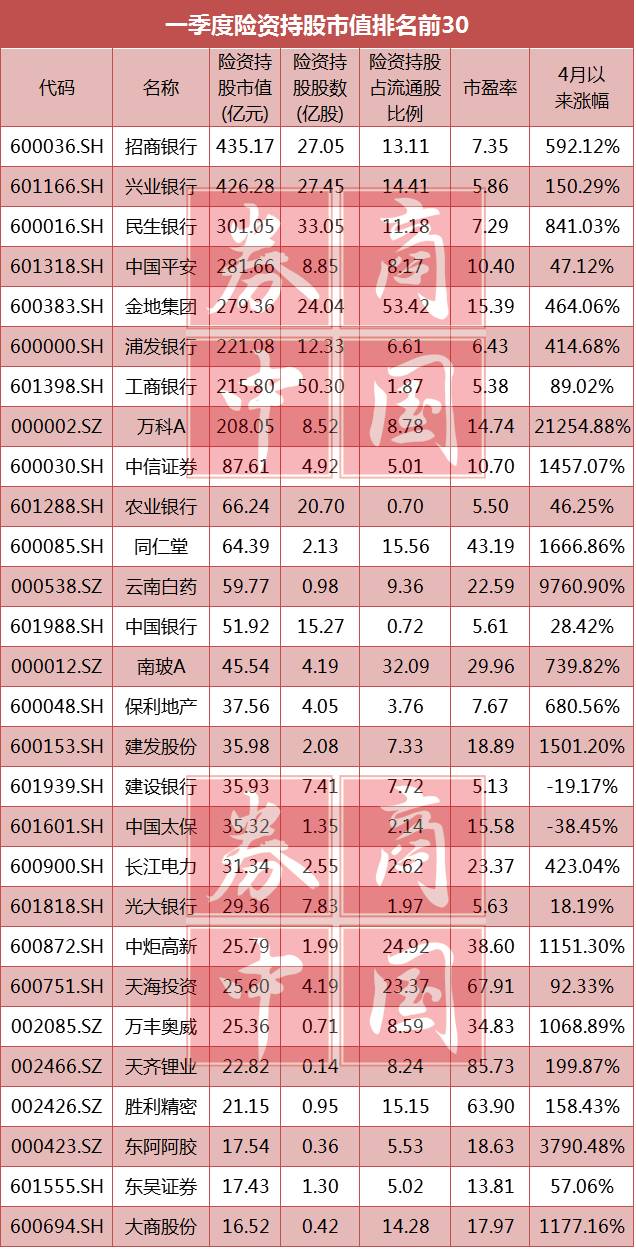 上市公司一季报披露结束,让保险资金万亿元规模的股市投资路径逐渐明晰。