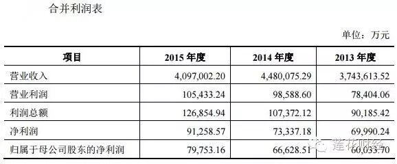 2015年度,公司营业收入为409.7亿元,较2014年下降8.55%,利润总额和净利润分别为12.69亿元和9.13亿元,较2014年分别上升18.15%和24.44%。