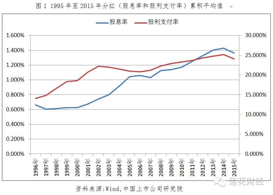 中国证券市场分红水平趋势向上,朝国际化分红水平迈进。据统计,A股市场累积股息率的年度均值从1996年的0.66%提升到2015年的1.36%;A股市场累积股利支付率的年度均值从1996年的14.05%提升到2015年的25.16%,趋势向上的迹象比较明显。