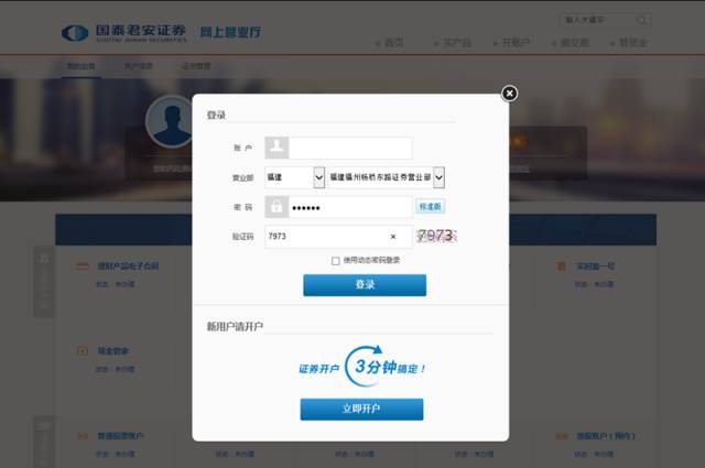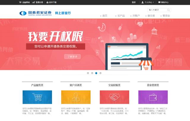 1、进入国泰君安证券官网http://www.gtja.com,选择个人金融,点击“网上营业厅”