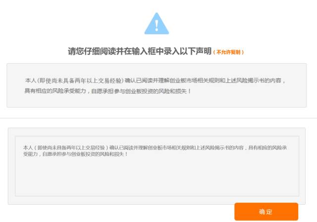 7、客户抄录声明,点击确认后,交易时间实时申报签约,非交易时间缓存,系统将于下一个交易日申报签约。